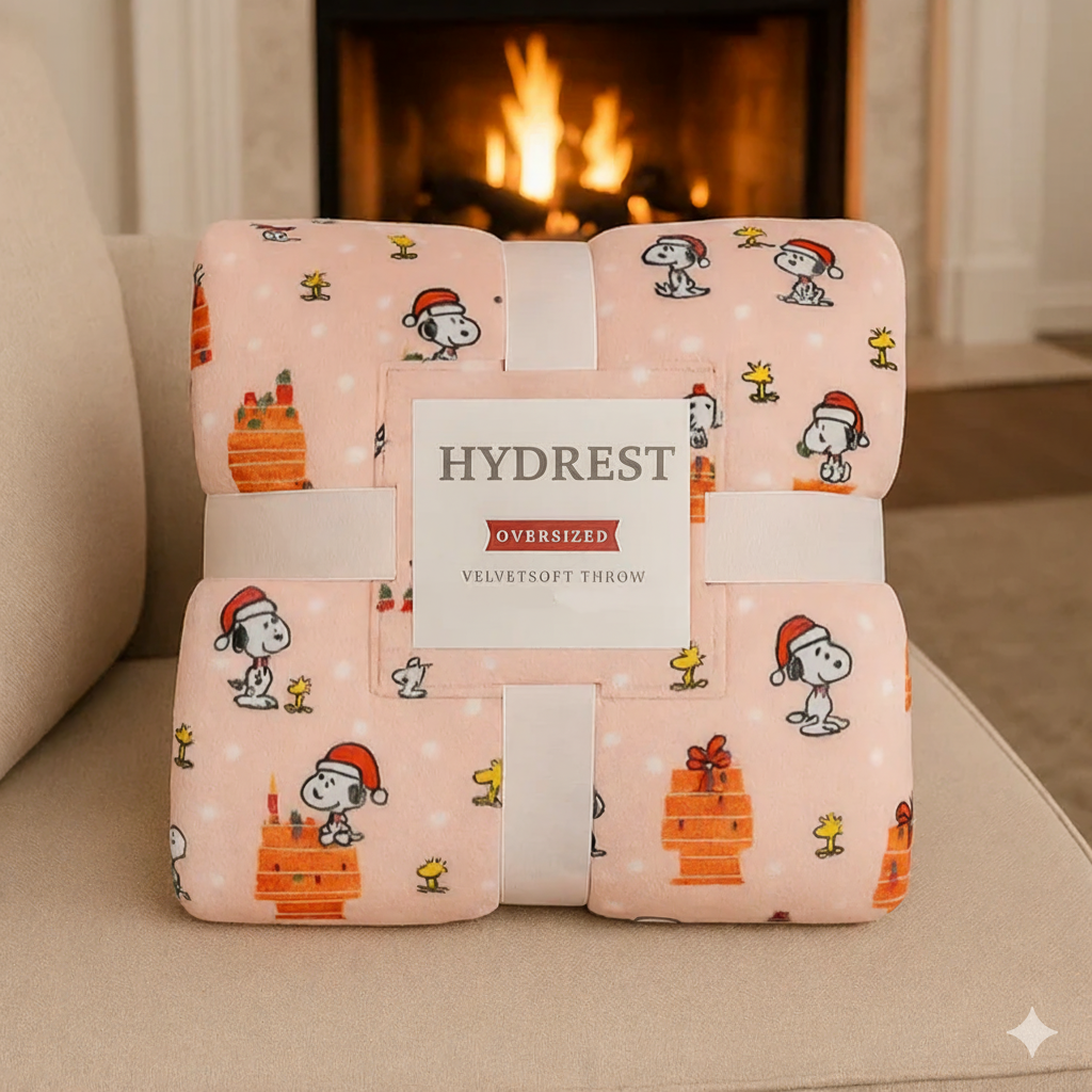Adorned with Snoopy and holiday cheer, it’s generously sized for sharing or adding an extra layer of warmth.